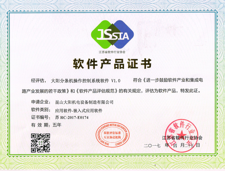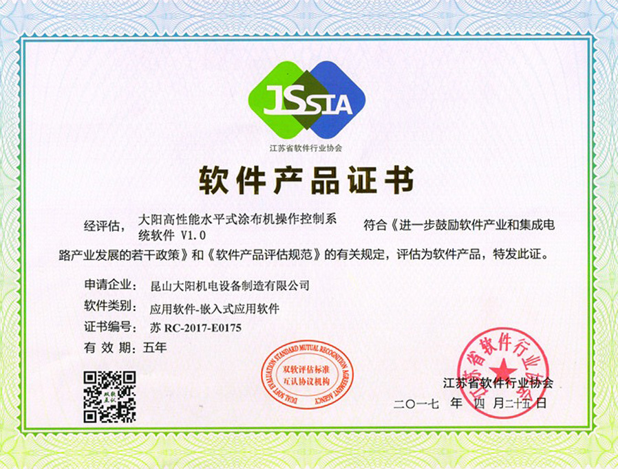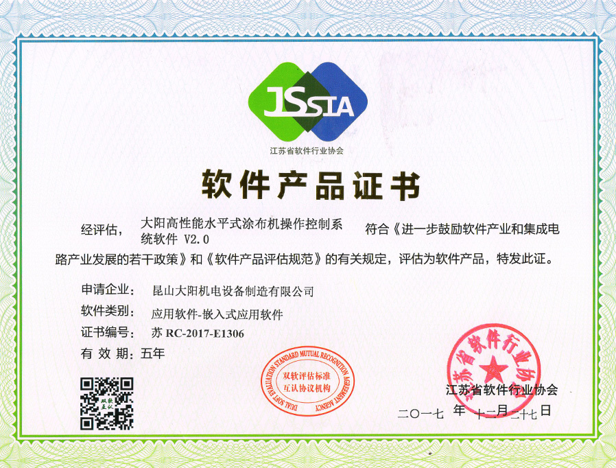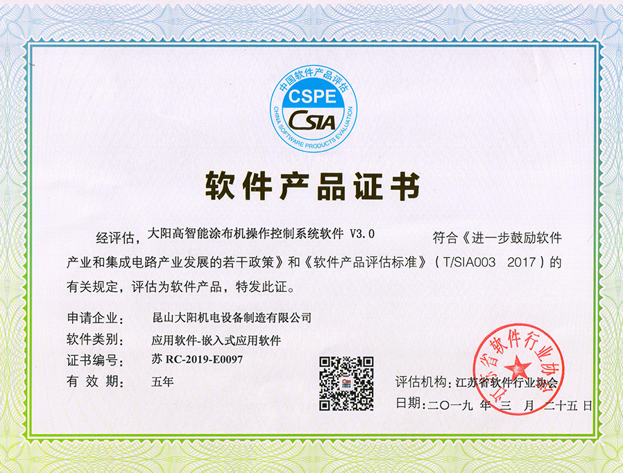 高性能涂布機(jī)操作系統(tǒng)軟件V2.0證書