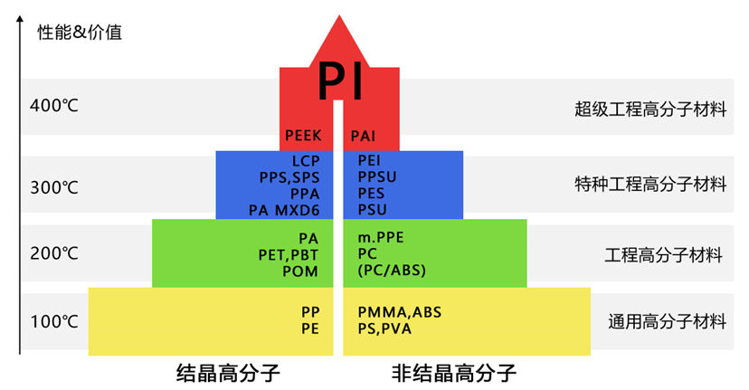 聚酰亞胺(Polyimide,簡寫為PI)新一代高性能高分子材料,具備顯著的市場應(yīng)用價值。作為超級工程高分子材料,聚酰亞胺已被廣泛使用在柔性線路板、消費電子、高速軌道交通、風力發(fā)電、5G通信、柔性顯示、航天航空、船舶制造、半導(dǎo)體、電子工業(yè)、納米材料、激光等眾多領(lǐng)域,并發(fā)揮著重要的作用。