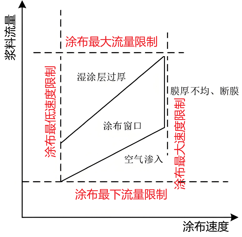 圖4 漿料流量與涂布速度坐標(biāo)軸構(gòu)成的涂布操作窗口