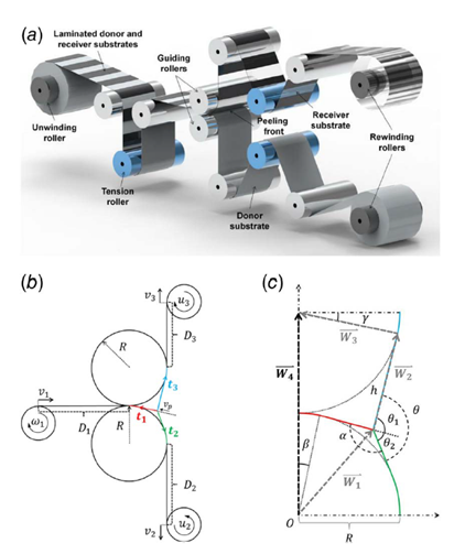 單個跨段中黏彈性卷材的行為可以用彈性模型來描述,但在多跨段系統(tǒng)中,這種預(yù)測與實(shí)際情況存在顯著差異。因此,大型、高精度的R2R系統(tǒng)中多跨段黏彈性至關(guān)重要。例如,在R2R干法轉(zhuǎn)移系統(tǒng)中,黏彈性可能導(dǎo)致薄膜剝離過程中的粘滑現(xiàn)象,給控制設(shè)計帶來巨大挑戰(zhàn)。因此,在高級應(yīng)用中必須充分考慮黏彈性效應(yīng)。05